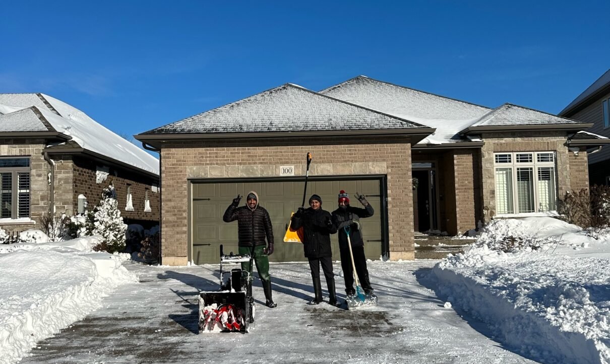 Manual removal of snow using shovels.
